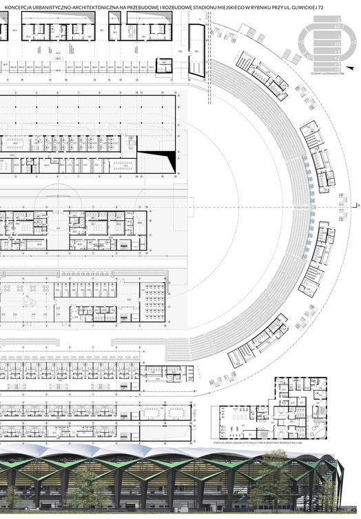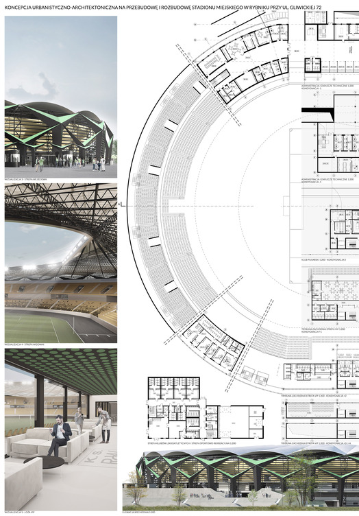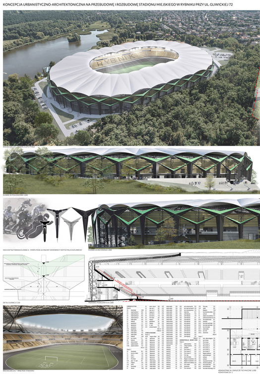 Przedmiotem konkursu zorganizowanego przez Miasto Rybnik we współpracy z SARP Oddziałem Katowice było opracowanie koncepcji przebudowy i rozbudowy stadionu miejskiego w Rybniku zlokalizowanego przy ul. Gliwickiej 72. W zakres opracowania wchodziło zagospodarowanie terenu wraz z niezbędną infrastrukturą techniczną i komunikacyjną, z uwzględnieniem etapowania inwestycji.