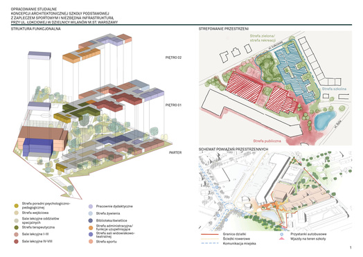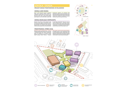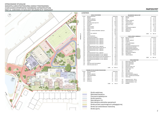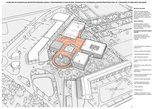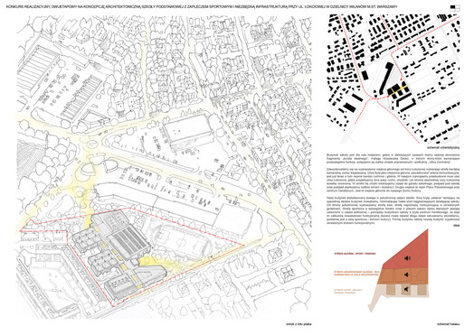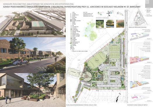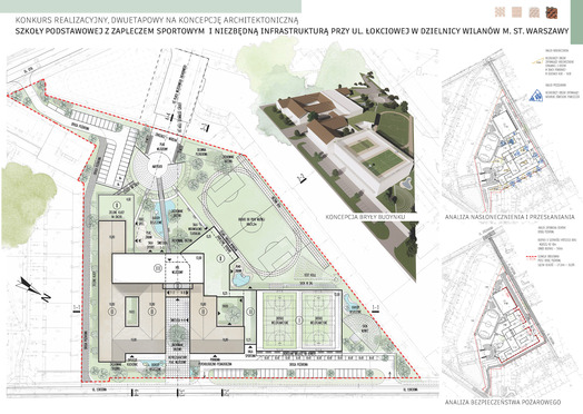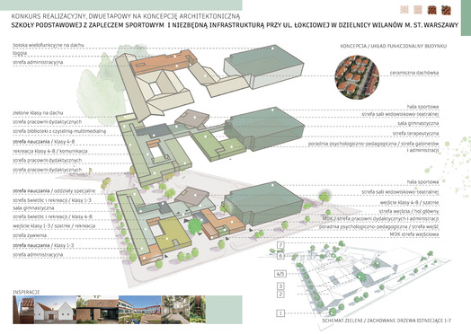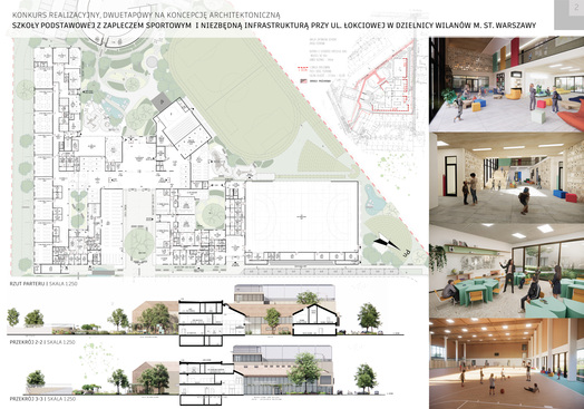 Przedmiotem konkursu zorganizowanego przez Dzielnicę Wilanów m.st. Warszawy we współpracy z Oddziałem Warszawskim SARP była koncepcja budynku Szkoły Podstawowej zlokalizowanej przy ul. Łokciowej w Warszawie. Należało zaprojektować kompleks oświatowy z dodatkowymi funkcjami jak Młodzieżowy Dom Kultury i poradnia psychologiczno-pedagogiczna, a także zapleczem sportowym, niezbędną infrastrukturą i zagospodarowaniem terenu. W zakresie projektu Szkoły należało wydzielić następujące strefy: