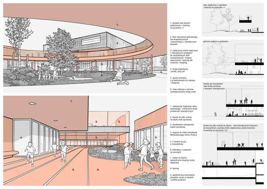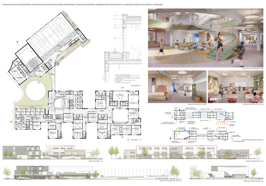Organizator oczekiwał od Uczestników konkursu koncepcji kompleksu, który będzie zapraszający i pobudzający wyobraźnię dzieci oraz uwzględniający rozwiązania proekologiczne. [AK]