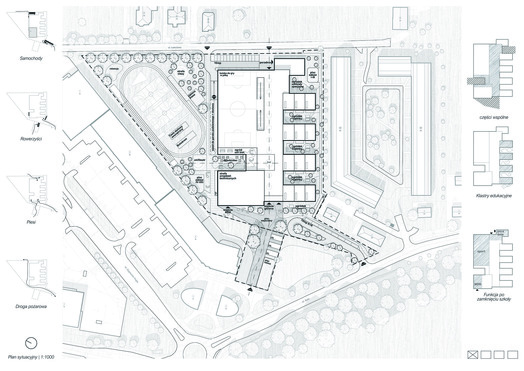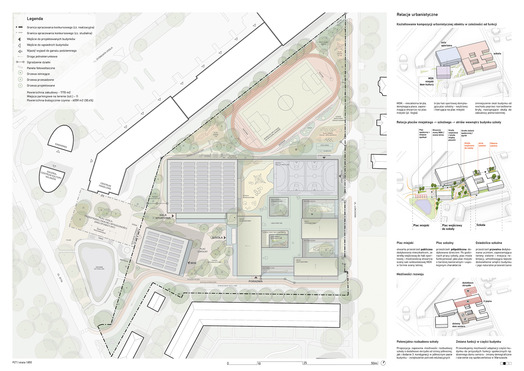 Projekt w sposób wzorcowy rozwiązuje detale elementów zagospodarowania terenu i wyposażenia wnętrza. Należy docenić również szczególne zwrócenie uwagi na różne grupy uczniów ze specjalnymi potrzebami i zaprojektowanie rozwiązań pod te potrzeby. Mimo odczytania intencji autorów, w ocenie sądu konkursowego plac wejściowy pozostanie urbanistycznie wyizolowany i bez efektywnych powiązań z resztą tkanki miejskiej. Autorzy nie zaproponowali przekonującej przestrzeni zielonej, z której mogliby korzystać wszyscy uczniowie.