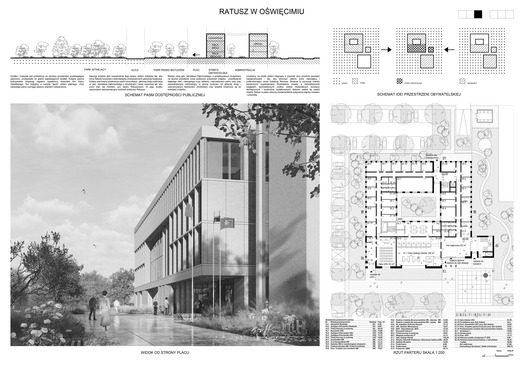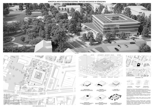 Przedmiotem konkursu zorganizowanego przez Miasto Oświęcim i SARP Oddział Kraków było wykonanie koncepcji budowy Ratusza Miejskiego zlokalizowanego przy ul. Gen. Jarosława Dąbrowskiego w Oświęcimiu. Należało zaprojektować budynek wraz z zagospodarowaniem terenu oraz propozycją powiązań komunikacyjnych z istniejącą siatką ciągów pieszych i układem drogowym.