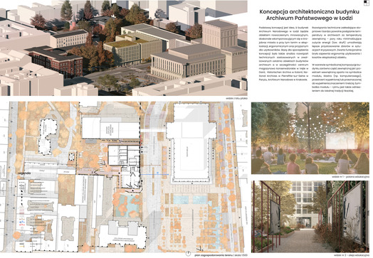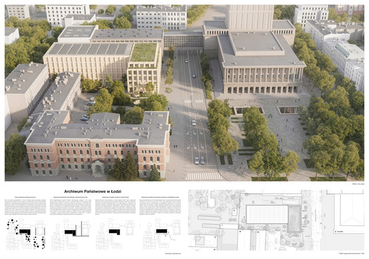 Przedmiotem konkursu zorganizowanego przez Archiwum Państwowe w Łodzi było opracowanie koncepcji nowej siedziby Archiwum zlokaliowanej na działce o powierzchni 4 630 m2 przy ul. Plac generała Henryka Dąbrowskiego w Łodzi. Należało zaprojektować budynek o pięciu kondygnacjach nadziemnych i jednej podziemnej, o łącznej powierzchni użytkowej nie mniejszej niż 9 200 m2, który będzie łączył funcje: