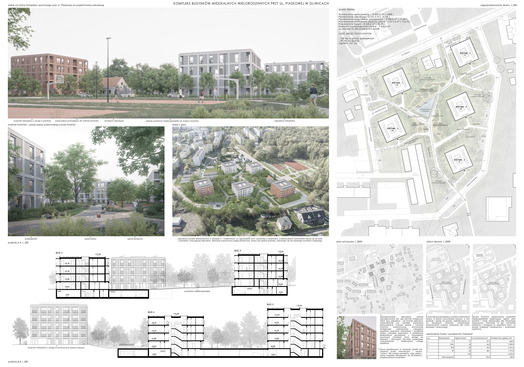 Konkurs jest jednym z serii trzech dotyczących zabudowy wielorodzinnej i zorganizowanych w zblizonym czasie przez ZBM II TBS w Gliwicach we współpacy z SARP O. Katowice. Pozostałe procedury dotyczyły kompleksów budynów przy ul. Pszczyńskiej i Kujawskiej oraz Św. Wojciecha i Myśliwskiej. [AK]
