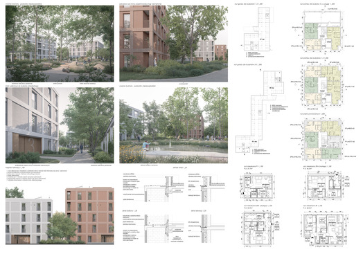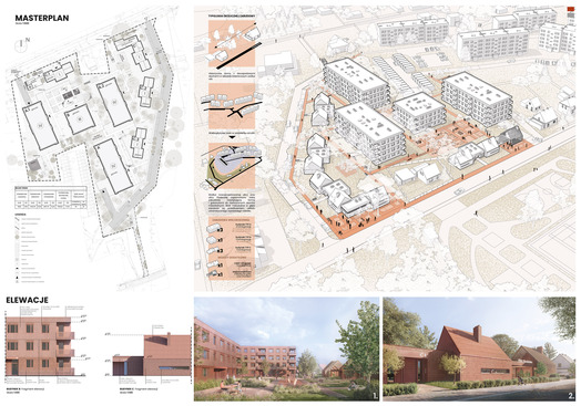 Za odważną i atrakcyjną próbę wpisania się w konflikty przestrzenne występujące w obszarze “kwartału”. Jednakże, zdaniem sądu konkursowego, należałoby zastosować bardziej mitygujące i zbalansowane w skali rozwiązania przestrzenne, zarówno pod kątem formy zabudowy, jak i jej intensywności w celu poprawy ekonomii użytkowania nieruchomości. Nie podkreślając jednocześnie kontrastu i potencjalnie nie zwiększając tym samym konfliktów społecznych, a zachowując wartość różnorodności i inkluzywność.