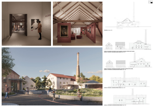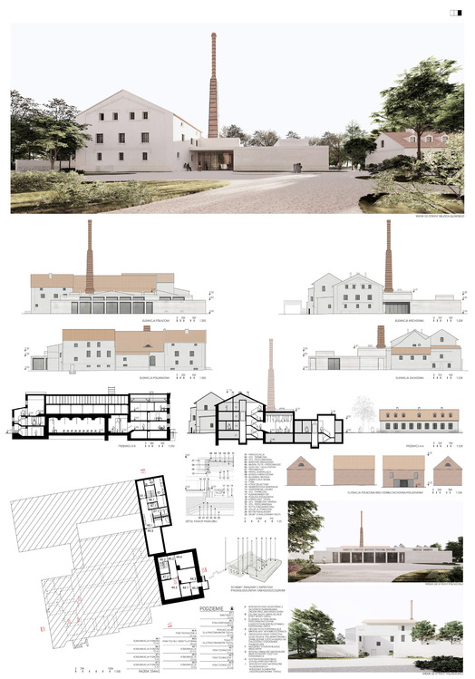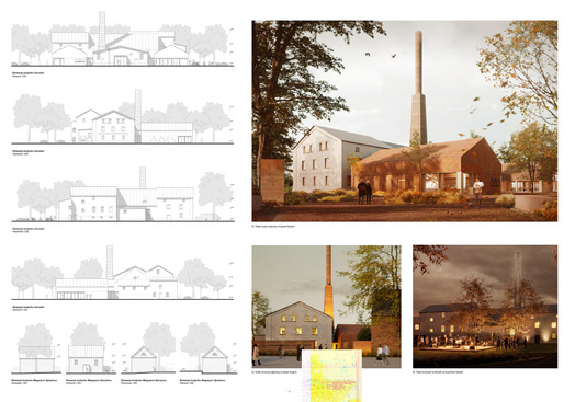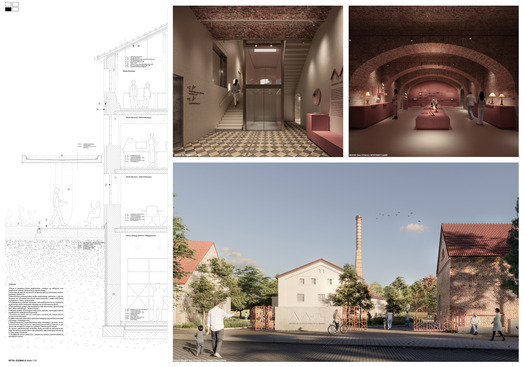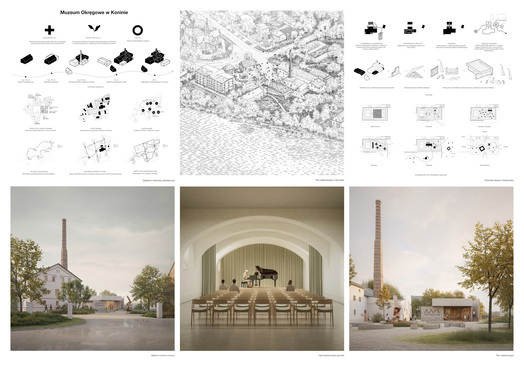 Za interesującą koncepcję, która z dużą wrażliwością łączy bryłę starego budynku - oczyszczoną z wtórnych nawarstwień - z rzeźbiarską sekwencją form przestrzennych, wykazując przy tym głębokie poszanowanie dla kontekstu oraz tożsamości miejsca. Projekt opiera się na umiejętnym wydobyciu autentycznej substancji zabytkowej, którą autorzy traktują jako bazę do dalszego rozwoju, zamiast zastępowania jej nową zabudową. Wysoko oceniono przywrócenie pierwotnej formy budynku gorzelni bez dodatkowej rozbudowy oraz wprowadzenie nowych, rzeźbiarskich struktur współczesnych. Formy te świadomie kontrastują z zabytkową materią, podkreślając nową funkcję muzealną obiektów i nadając im nowoczesny charakter. Koncepcja w sposób niezwykle klarowny scala wszystkie wartościowe obiekty w jeden spójny kompleks poprzez wprowadzenie centralnego placu wejściowego, szeroko otwierającego się na ulice Gotycką i Gosławicką.