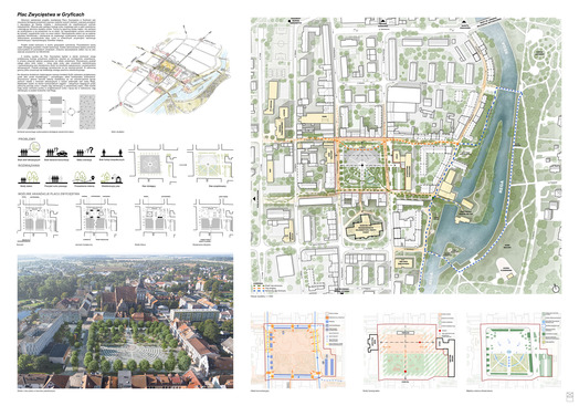 Przedmiotem konkursu zorganizowanego przez Gminę Gryfice przy udziale SARP Oddział Koszalin było opracowanie koncepcji zagospodarowania Placu Zwycięstwa zlokalizowanego w centrum Gryfic. Należało zaprojektować spójną przestrzeń publiczną, która będzie atrakcyjnym miejscem spotkań, odpoczynku i rekreacji. Organizator oczekiwał propozycji rewitalizacji i otoczenia obszaru bogatą, komponowaną zielenią. W założeniu nowy Plac Zwycięstwa ma być nowoczesny, funkcjonalny i ekonomiczny, jednak z uwzględnieniem tradycji i zabytkowego kontekstu. [AK]