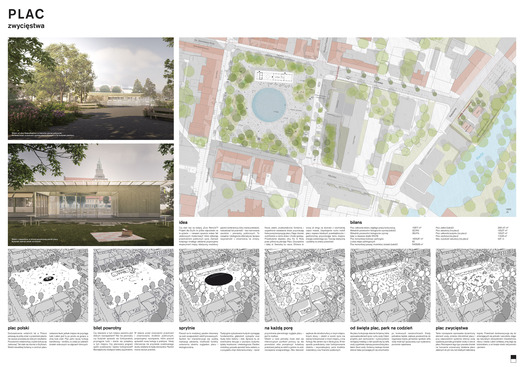 Praca Konkursowa otrzymała wyróżnienie za harmonijne uporządkowanie przestrzeni i stworzenie czytelnej, estetycznej kompozycji Placu Zwycięstwa, sprzyjającej różnorodnym formom użytkowania.