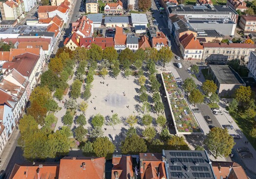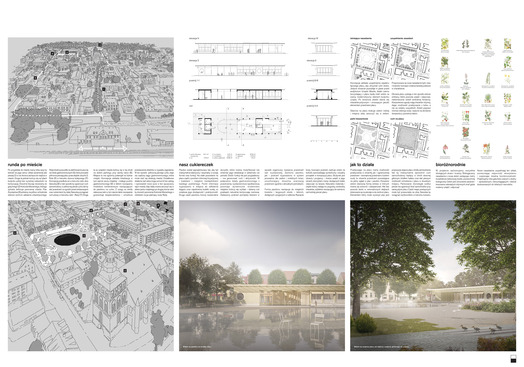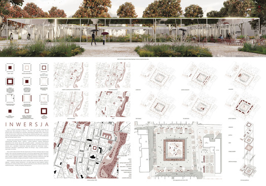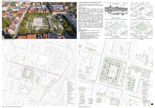 Praca Konkursowa otrzymała wyróżnienie za próbę urządzenia przestrzeni zielonej - oazy w centrum utwardzonego Placu Zwycięstwa.
