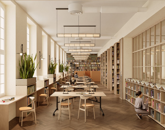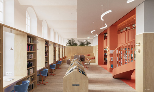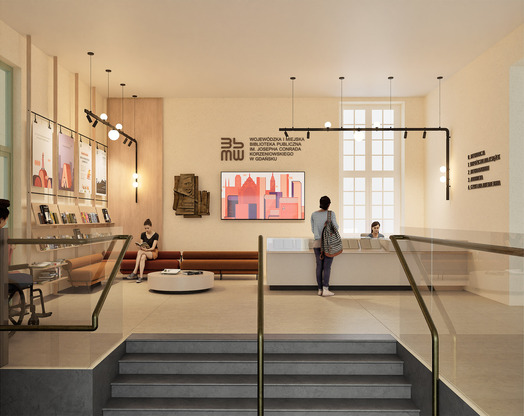 Przedmiotem konkursu zorganizowanego przez Wojewódzką i Miejską Bibliotekę Publiczną im. Josepha Conrada Korzeniowskiego było opracowanie koncepcji wnętrz w budynku biblioteki zlokalizowanym przy Targu Rakowym 5/6 w Gdańsku. Należało zaprojektować rozwiązania dla parteru od jego południowo-wschodniego szczytu aż do poziomu Galerii Biblioteki włącznie oraz dla piętra budynku. [AK]