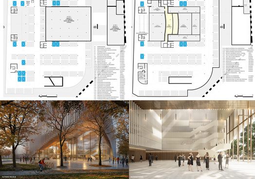 Za przejrzyste założenia uczynienia obiektu elementem krajobrazu miasta, co zostało rozwiązane z uszanowaniem uwarunkowań szeroko pojętej dostępności i inkluzywności, przy wykorzystaniu walorów proponowanej zieleni, stanowiąc też próbę włączenia topografii budynku do aktywnej strefy rekreacji miejskiej.