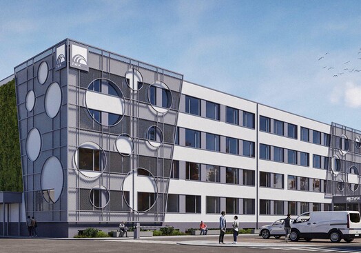 Za umiejętne połączenie nowoczesnych rozwiązań estetycznych z uwzględnieniem istniejącej struktury obiektu. Projekt w czytelny sposób wzmacnia tożsamość spółki, wykorzystując motywy inspirowane wodą oraz spójną kolorystykę nawiązującą do identyfikacji wizualnej firmy. Szczególnie wartościowym elementem jest zastosowanie „drugiej” elewacji z siatki cięto-ciągnionej, która nadaje budynkowi indywidualny charakter i lekkość dzieląc budynek na sekcje, wizualnie zmieniając jego proporcje. Istotnym atutem koncepcji jest wprowadzenie błękitno-zielonej infrastruktury na elewacjach szczytowych, co podkreśla proekologiczne podejście projektantów i przeciwdziała zmianom klimatu. Uporządkowanie strefy wejściowej oraz czytelne zaakcentowanie głównego wejścia znacząco podnosi funkcjonalność budynku i jakość jego odbioru.