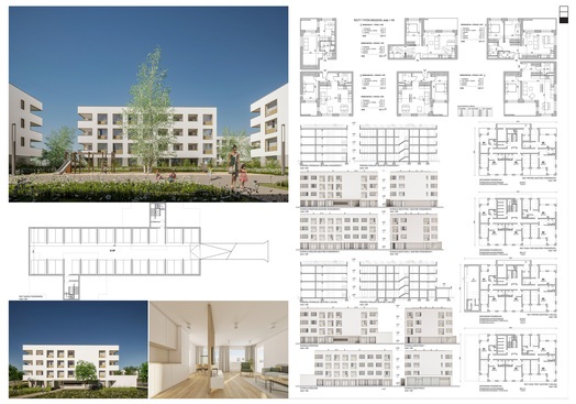 Praca proponuje i twórczo interpretuje ideę wydzielenia w obrębie działki mniejszych kwartałów, które mają skłonić mieszkańców do integracji wokół wewnętrznych zielonych dziedzińców i pozostawia ruch samochód na obrzeżach całego osiedla. Zaproponowane rozwiązania architektoniczne dobrze korespondują z tym pomysłem tworząc dla dziedzińców spokojne estetyczne ramy, przy pomocy klasycznych elewacji i sprawdzonych rozwiązań funkcjonalnych we wnętrzach budynków.