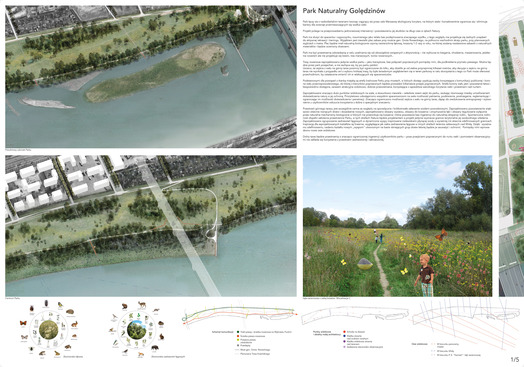 Konkurs na koncepcję Parku Naturalnego Golędzinów w Warszawie dążył do uzyskania wytycznych dla adaptacji i modernizacji cennego przyrodniczo obszaru opracowania. Zatem celem naczelnym prac konkursowych miało być zarówno poszanowanie istniejących uwarunkowań przyrodniczych i krajobrazowych, jak i zaproponowanie rozwiązań projektowych dla wyznaczenia terenów do objęcia ochroną. Ponadto koncepcje Uczestników miały uwzględniać wzbogacenie obszaru o nowe, nieinwazyjne i wkomponowane w obecny charakter miejsca formy małej architektury, nawierzchnie i miejsca wypoczynku oraz edukacji przyrodniczej. W założeniu Organizatora Inwestycja ma umożliwić zatrzymanie wpływu człowieka na środowisko i ukierunkowanie ruchu. [AK]