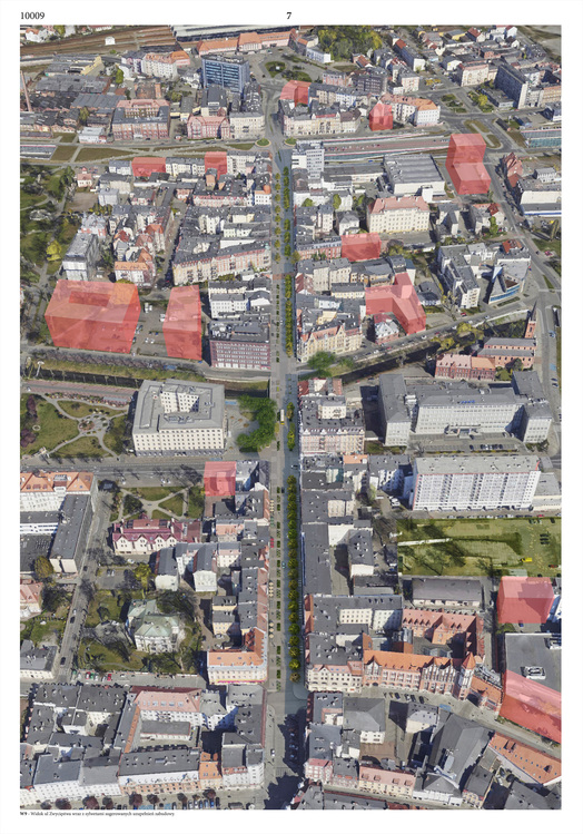 lokalizację poszczególnych elementów infrastruktury oraz rozwiązania układu ruchu. Na uwagę zasługuje fakt wyróżnienia ważnych węzłów komunikacji pieszej i rowerowej – most nad rzeką Kłodnicą oraz skrzyżowanie z al. Przyjaźni – poprzez wiszące oprawy oświetleniowe, rozpięte nad jezdnią.