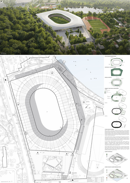 Za dobre wkomponowanie w teren opracowania i próbę zintegrowania przestrzeni miejskiej otaczającej stadion.