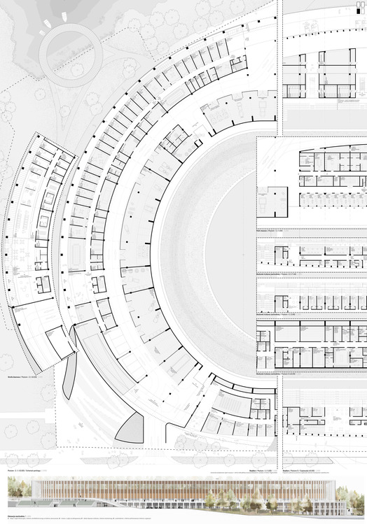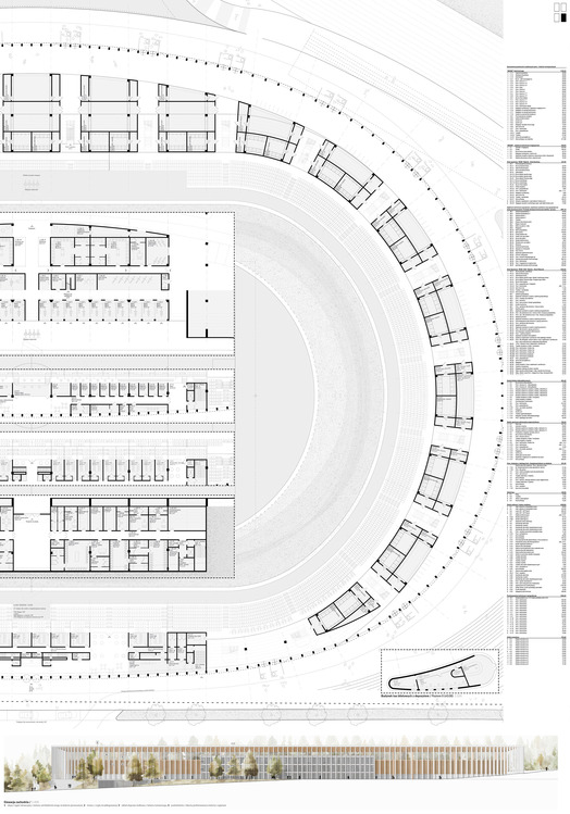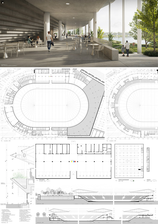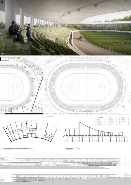 Projekt otwiera otoczenie stadionu dla mieszkańców poza czasem związanym zawodami sportowymi. Przezierna i elegancka struktura elewacji oraz konstrukcji nie dominuje przestrzeni tej części miasta.