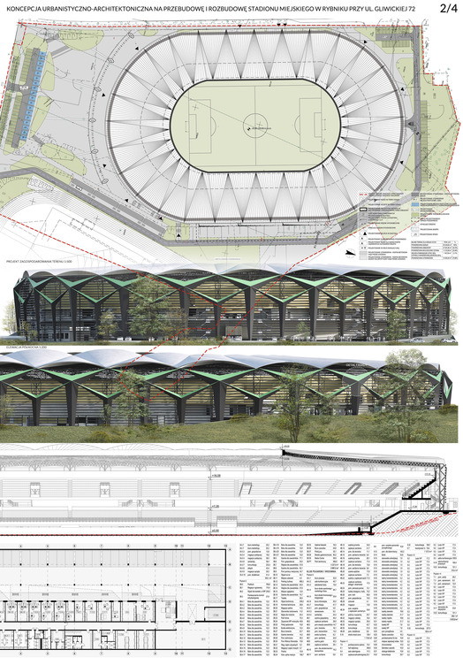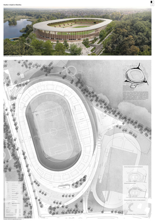 Przedmiotem konkursu zorganizowanego przez Miasto Rybnik we współpracy z SARP Oddziałem Katowice było opracowanie koncepcji przebudowy i rozbudowy stadionu miejskiego w Rybniku zlokalizowanego przy ul. Gliwickiej 72. W zakres opracowania wchodziło zagospodarowanie terenu wraz z niezbędną infrastrukturą techniczną i komunikacyjną, z uwzględnieniem etapowania inwestycji.