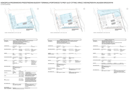 Należało zaprojektować budowę terminala T2 przy ul. Żytniej wraz z wewnętrznym układem drogowym i połączeniem z ul. Mazurską, uwzględniając nowe powierzchnie składowe z dostępem do bocznicy kolejowej i wyposażone w nowoczesne urządzenia przeładunkowe oraz infrastrukturę umożliwiającą efektywne zarządzanie ładunkami. Organizator oczekiwał rozwiązań umożliwiających usprawnienie procesów logistycznych i obsługę towarów w systemie multimodalnym, integrującym transport morski, kolejowy i drogowy.