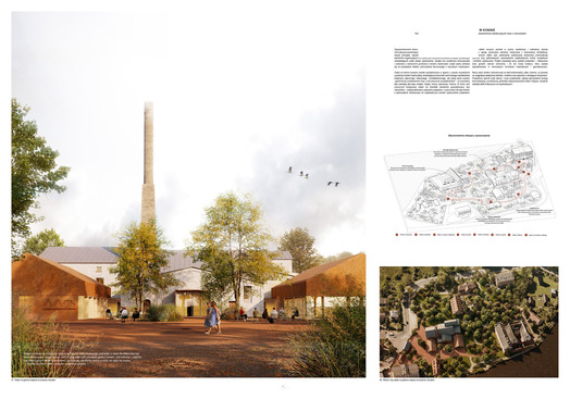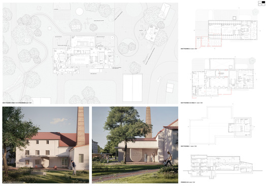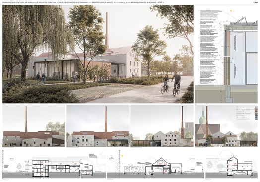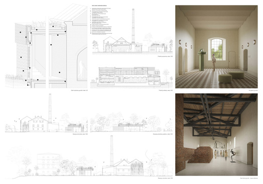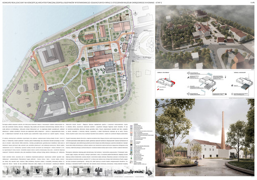 Za interesującą koncepcję, która z dużą wrażliwością łączy bryłę starego budynku - oczyszczoną z wtórnych nawarstwień - z rzeźbiarską sekwencją form przestrzennych, wykazując przy tym głębokie poszanowanie dla kontekstu oraz tożsamości miejsca. Projekt opiera się na umiejętnym wydobyciu autentycznej substancji zabytkowej, którą autorzy traktują jako bazę do dalszego rozwoju, zamiast zastępowania jej nową zabudową. Wysoko oceniono przywrócenie pierwotnej formy budynku gorzelni bez dodatkowej rozbudowy oraz wprowadzenie nowych, rzeźbiarskich struktur współczesnych. Formy te świadomie kontrastują z zabytkową materią, podkreślając nową funkcję muzealną obiektów i nadając im nowoczesny charakter. Koncepcja w sposób niezwykle klarowny scala wszystkie wartościowe obiekty w jeden spójny kompleks poprzez wprowadzenie centralnego placu wejściowego, szeroko otwierającego się na ulice Gotycką i Gosławicką.