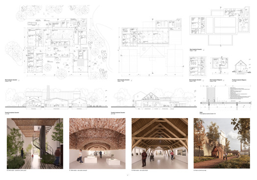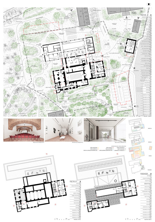 na potrzeby muzealne uzupełniając go o części umożliwiające sprawną komunikację oraz o wolnostojący pawilon wspierający funkcje wystawiennicze Muzeum. Układ funkcjonalny przedstawiony na rzutach jest niebywale przejrzysty i czytelny a przede wszystkim ukazujący klarowny i doskonały podział funkcji równocześnie dbając o oszczędność w powstawaniu nowej powierzchni budynku.