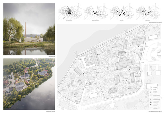 Za czytelną i konsekwentnie prowadzoną koncepcję zespołu muzealnego, opartą na wyraźnym porządkowaniu przestrzeni oraz jednoznacznych rozwiązaniach urbanistycznych. Projekt wyróżnia się klarowną strukturą zagospodarowania terenu oraz świadomym kształtowaniem relacji pomiędzy zabudową a przestrzeniami otwartymi. Sąd Konkursowy pozytywnie ocenia otwarcie i dobre wyeksponowanie Zamku, który w tej pracy zachowuje właściwą rangę jako kluczowy element zespołu muzealnego. Na uznanie zasługuje również umiejscowienie przestrzeni warsztatowych w bezpośrednim sąsiedztwie ogrodu, co sprzyja funkcjom edukacyjnym i umożliwia elastyczne wykorzystanie przestrzeni zewnętrznych w działalności Muzeum.