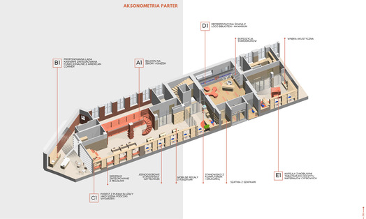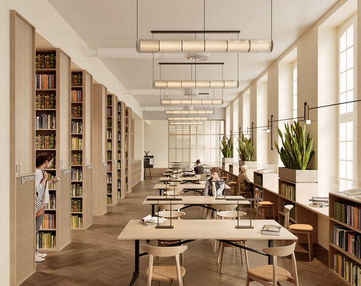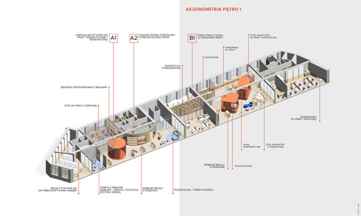 Przedmiotem konkursu zorganizowanego przez Wojewódzką i Miejską Bibliotekę Publiczną im. Josepha Conrada Korzeniowskiego było opracowanie koncepcji wnętrz w budynku biblioteki zlokalizowanym przy Targu Rakowym 5/6 w Gdańsku. Należało zaprojektować rozwiązania dla parteru od jego południowo-wschodniego szczytu aż do poziomu Galerii Biblioteki włącznie oraz dla piętra budynku. [AK]