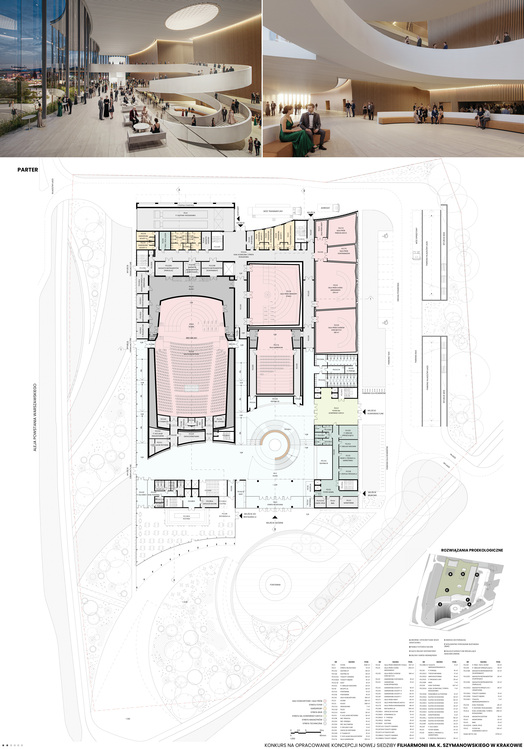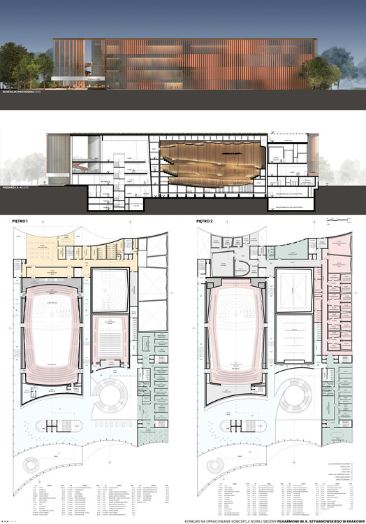 Przedmiotem konkursu zorganizowanego przez Województwo Małopolskie przy wsparciu krakowskiego Oddziału SARP było pracowanie koncepcji nowej siedziby Filharmonii im. K. Szymanowskiego wraz z wewnętrznym układem komunikacyjnym i zagospodarowaniem terenu, zlokalizowanej w sąsiedztwie Ronda Grzegórzeckiego w Krakowie. Należało zaprojektować nowoczesny, nowatorski a zarazem ponadczasowy obiekt kultury odpowiadający współczesnym wymaganiom dla filharmonii. Kopncepcje budynku miały uwzględniać w sczególności: