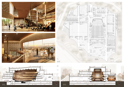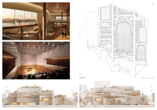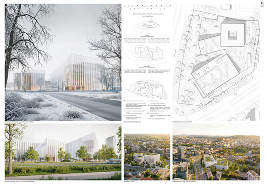Za przejrzyste założenia uczynienia obiektu elementem krajobrazu miasta, co zostało rozwiązane z uszanowaniem uwarunkowań szeroko pojętej dostępności i inkluzywności, przy wykorzystaniu walorów proponowanej zieleni, stanowiąc też próbę włączenia topografii budynku do aktywnej strefy rekreacji miejskiej.