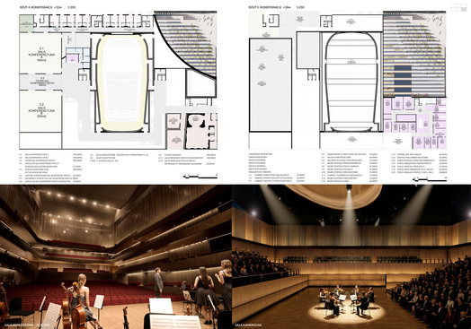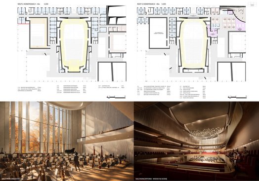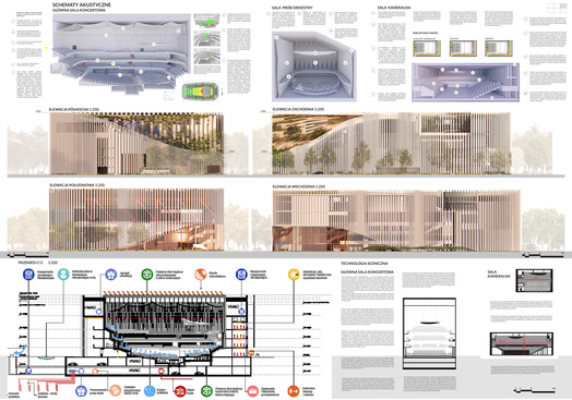 koncertowymi, strefami pomieszczeń słuchaczy, muzyków i transportu instrumentów.