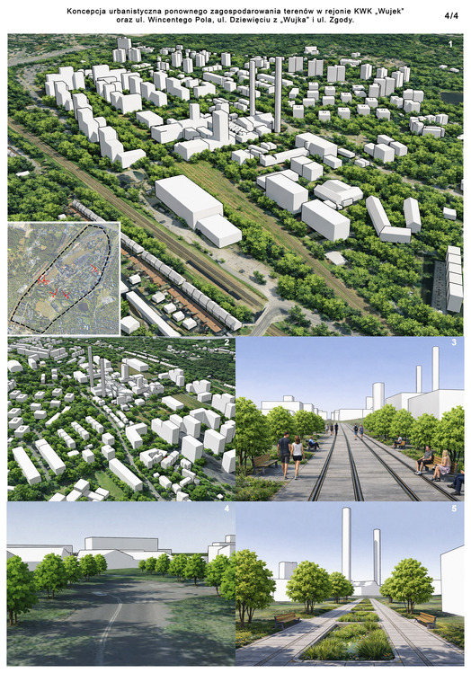 Przedmiotem konkursu zorganizowanego przez Miasto Katowice było opracowanie koncepcji miejscowego planu zagospodarowania przestrzennego dla terenu po kopalni Węgla Kamiennego „Wujek” oraz rejonu ulic Wincentego Pola, Dziewięciu z „Wujka” i Zgody w Katowicach.