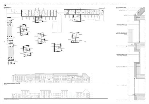 - trafnie zaproponowano dobór materiałów i kolorystyki, umożliwiając stworzenie klimatu wnętrz kwartałów o wysokiej wartości plastycznej,
